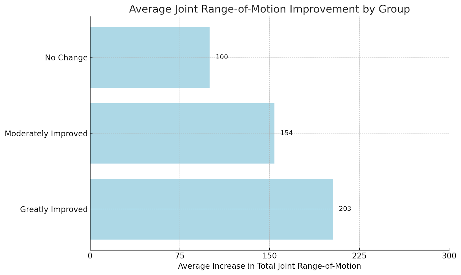Figure 3: Average increase in total joint range-of-motion measurements, comparing initial evaluation with final evaluation
