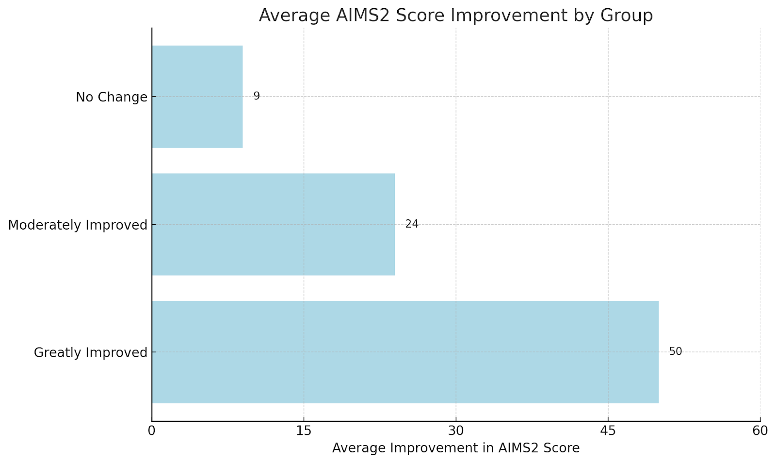 Figure 2: Average improvement in AIMS2 score for each group, comparing initial testing with final testing.