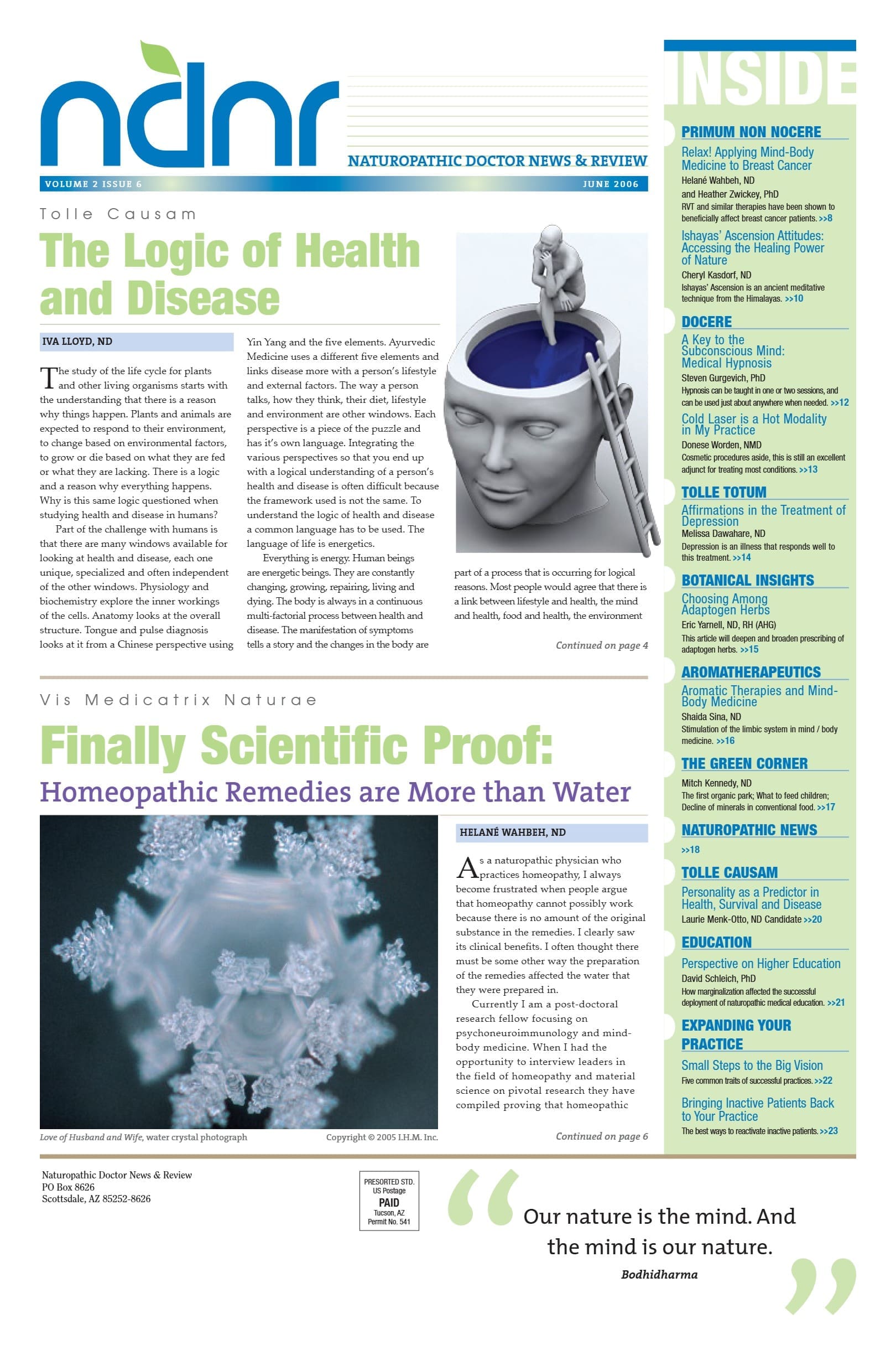 The Logic of Health and Disease.................................>> cover Iva Lloyd, ND Finally Scientific Proof: Homeopathic Remedies are More than Water........................>> bottom of cover Helané Wahbeh , ND Relax! Applying Mind-Body Medicine to...