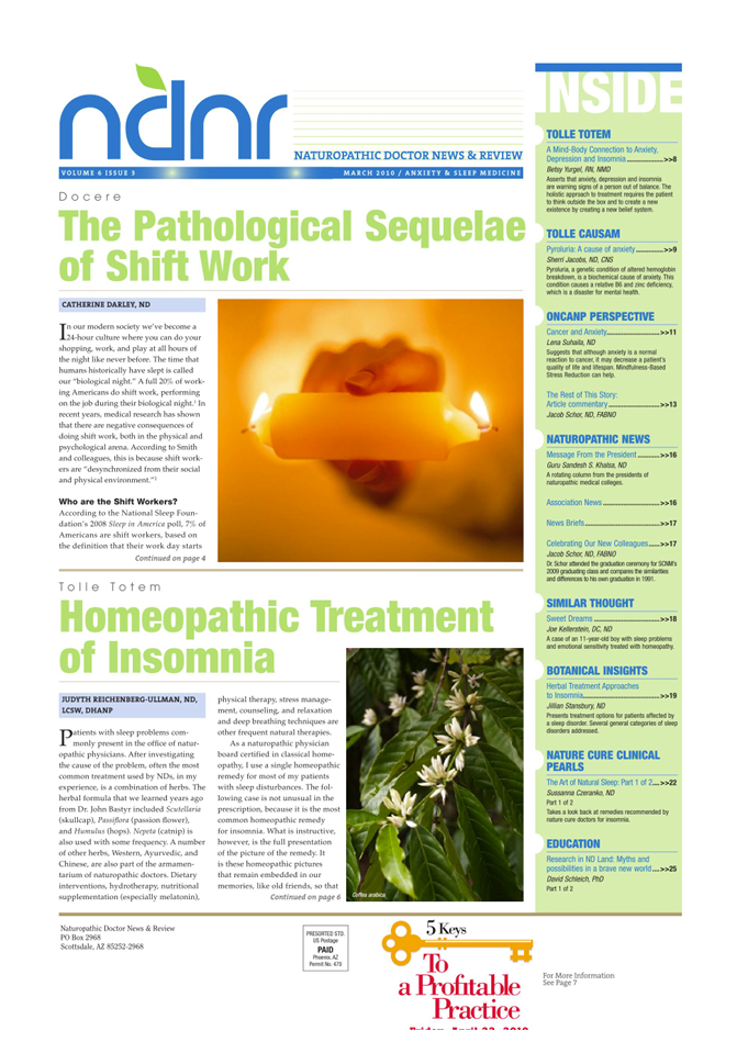 The Pathological Sequelae of Shift Work Catherine Darley, ND Describes common performance, safety and health consequences of shift workers, and offers strategies to help those patients work during the night successfully. Homeopathic Treatment of Insomnia Judyth...