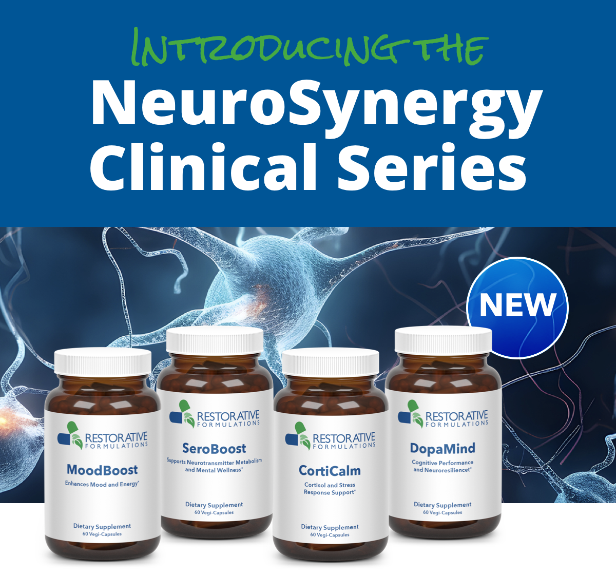 Montpelier, VT, March 27, 2026 — Restorative Formulations has released the NeuroSynergy Clinical Series, a new line of four professional dietary supplement formulas designed for use in naturopathic and functional medicine practices.